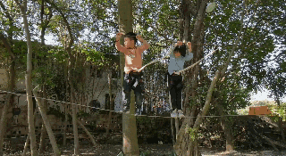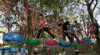 在丛林间游走,在绳索上摇曳